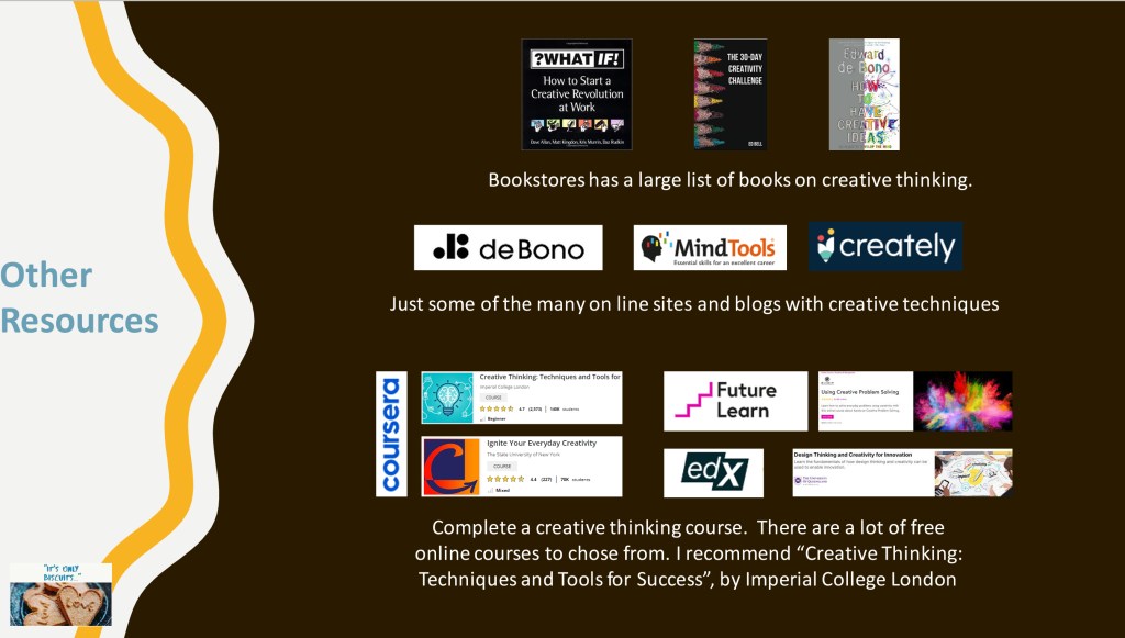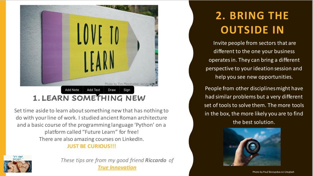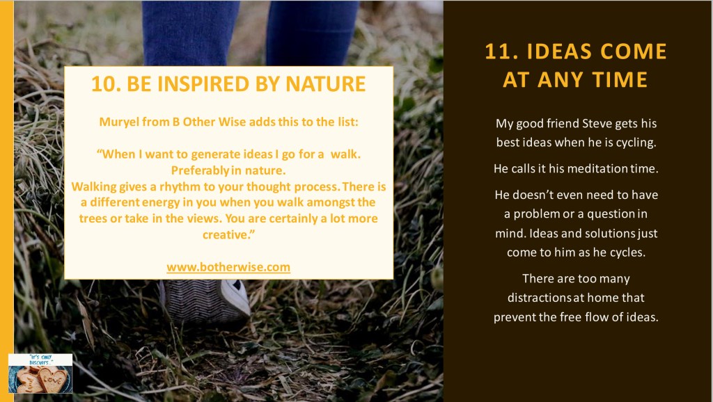I then thought, “Wouldn’t it be nice to put together all the ways I know about coming up with ideas”. “Why not share it with everyone!” was my next thought. “Why not ask friends and colleagues to contribute” was the one that followed.
